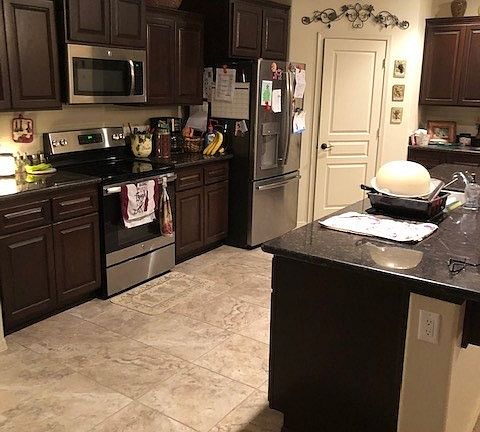 - Kitchen Featrs: Tile Flooring, Vaulted/Elevated Ceiling, Refrigerator, Electric Range/Oven, Microwave, Garbage Disposal, Dishwasher, Pantry, Granite Countertops