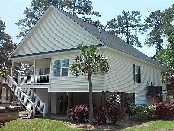Large raised beach home with an open floor plan, plenty of storage and easy access to the waterway. The home features an over-sized Master bedroom on the whole top floor with walk-in closet and large jacuzzi tub. Three bedrooms on the main level, a formal dining area, eat-in kitchen, stainless steel appliances, back deck off of the kitchen and bedroom area. Under the house there's a 1 car garage, separate, conditioned motorcycle room (or Man Cave) and plenty of room for storage. Including the storage shed/work shop behind the house. No HOA to deal with!! This home is in good condition and located in a beautiful neighborhood.