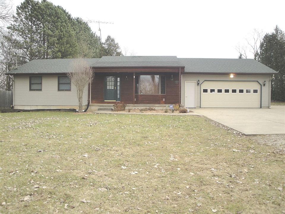 Enjoy this lovely setting of large shade trees in the front yard as you drive back, to this 3 bedroom, 3 bath home that was built in 1977. Many updates have been done, including the kitchen which has plenty of cabinets and counter tops. The gas fireplace in the kitchen/dining room will set a festive mood for any holiday! The covered deck off the back measuring 25 x 14, will handle the summer barbecue parties and/or family gatherings outside. If you need a spot to park the RV, next to the attached 2 car garage, will be the place for this while the pole barn in the back measuring 40x20, with a concrete floor has lots of room for storage.