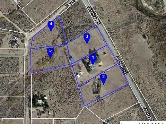 This is the perfect horse property and a 4H special. There's appx 8 acres cross fenced on five connecting parcels located on Old Hwy 395. The house is a spacious 2,600 sqft with a newer stick built addition for the newer living room with amazing natural lighting and beautiful wood ceiling, dining area, bedroom, second entry to the house, hot tub area, second bathroom, as well as a small root cellar for your wine or food storage. There are fans in the house to keep the cool air circulating from the in-the-wall swamp cooler and warm heat in the winter from the Blaze King wood stove. The in-door hot tub stays with the property and will be great during those winter days. Outside, there is a two car garage with attached carport, oversized three space metal barn, fenced horse stall, sitting area with fenced garden, four wells (two are active), basketball court, lined area for a pond, beautiful mountain views and so much more. Sit on the front porch and watch the sun rise or have a nice drink while watching the sun set from the back sitting area.