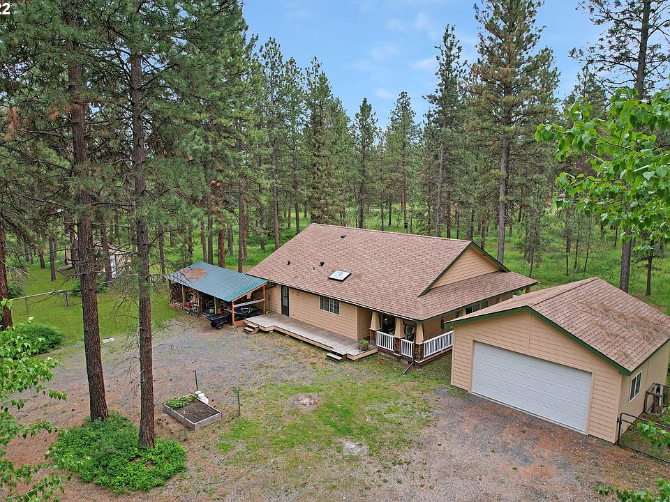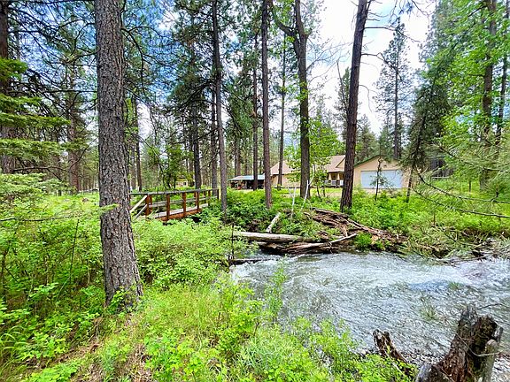 This cozy home is nestled in a beautiful, private forest setting on the banks of Pine Creek at the base of the Elkhorn Mountains. This nearly 5 acre property includes two fully fenced acres which is perfect for animals and also includes an established orchard of pear, plum, and cherry trees. Multiple outbuildings include a two-car garage built in 2018, a garden shed, and an insulated wood shop with a small office space. A new roof / skylight was updated in 2020 and a new pressure tank in 2022.