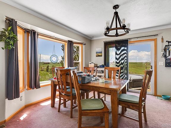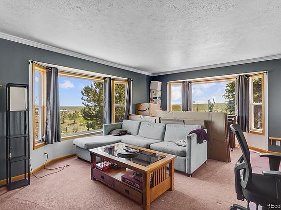 Beautiful 37.8 acre ranch just minutes from I-70 and the town of Bennett CO. Great loaction for commute into Denver or DIA. You can enjoy keeping a sharp eye on your livestock from any of the three large bay windows. Enjoy fantastic sunsets from the deck while soaking in the hot tub. Main level master with en-suite bath plus additional bedroom and another full bathroom. Kitchen and dining area have easy access to the deck for morning coffe break. Lovely living room has a free standing pellet stove for cozy winter nights.Lower level has one conforming bedroom and another possible bedroom (non-conforming) and also a full bathroom on this level. Easy to fininsh area could allow for additional finished sqaure feet. Walk-out lower level to back yard is convenient to check on the chickens. Storage area has stub out for possible wet bar. Lots of updating in 2016! Kitchen had new counter tops, laminate flooring and appliances in 2016. New roof and exterior paint. Furnace and AC new in 2016.