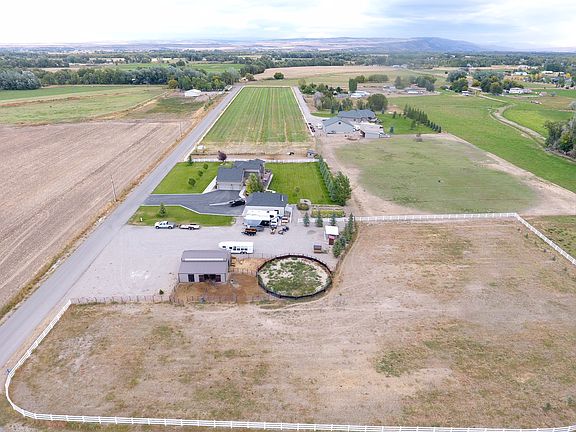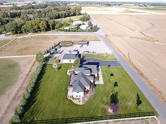 This is a one of a kind property with plenty of space for you and your horses! Start with the custom home with over 5000 square feet. The main level has 19' ceilings in the Great Room, gas fireplace, huge picture windows, tile entry, hardwood floors, open Kitchen, granite countertops, walk-in pantry, dual ovens, Formal Dining Room, huge Master Suite, huge Master Bath, second bedroom, full and half baths, walk out 12'x51' trex deck just to name a few. Upstairs there's a large bedroom/mother-in-law suite, full bath and a large den/office with built-in cabinets. Downstairs there's a large Family Room, 2 more bedrooms, Excercise Room, Theater room, Full Bath, wood Fireplace, Secret Room, Storage and a walk out basement. Outside there are 2 shops. The first is a 34X40 shop with 12X28 bonus room for storage or living space. The second shop is a fully finished inside and out 40X60X14 just completed in 2019. Both shops are well insulated and both have propane furnaces. There is also a fully finished 36X36 barn with insulated Tack Room and 3 finished 12X12 stalls for the horses.Property sits on 9.5 acres total with 5000 feet of Vinyl fencing and water rights w/ flood irrigation. This is a property you must see!