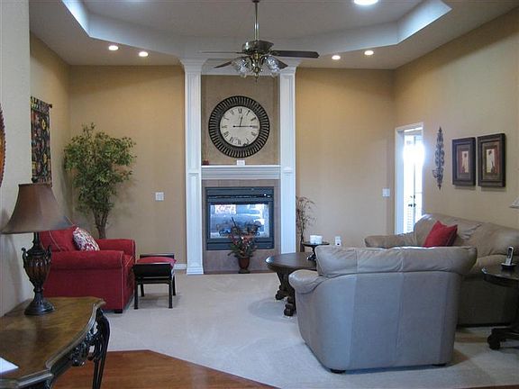 NEW PRICE on this Gorgeous & Amazing home! Sellers are motivated on this All Brick, Maintenance Free home that looks brand new. Home features 4 bedrooms, 3 Full Baths, Formal Living Room with see-through gas fireplace into the Hearth room. Custom cherry cabinets throughout home, a gourmet kitchen with large eating area and Sandstone counter tops. Fabulous Formal Dining room, beautiful hardwood floors, 2 pantries and lots of storage. Large kitchen features pull-out drawers, pantry, stainless appliances, French-door refrigerator and washer/dryer stay. Home features tall ceilings with beautiful ceiling treatments, unique wall textures and is on one of the largest lots in The Lakes At Wild Horse. Home has insulated tile floors, water softener, sprinkler system and many extras! Energy efficient HVAC 90+ Furnace. Large Covered Back Porch overlooks the landscaped backyard. Close to New Hickory Hills School. Home has Security System & Sellers are providing Home Warranty. One Beautiful Home!