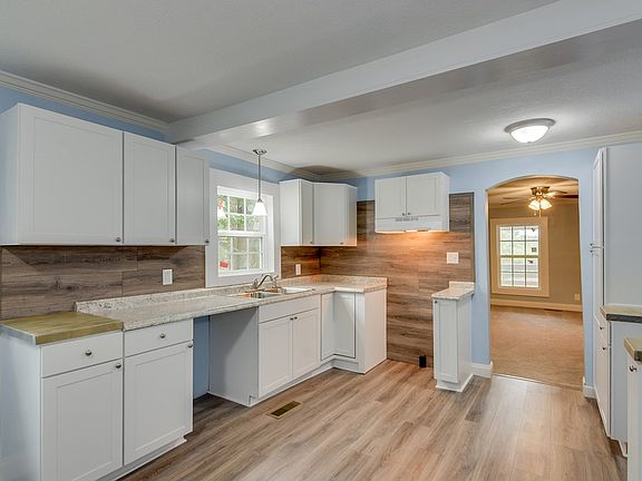 Beautifully renovated home on 2.2 acres with almost 600 SF of covered porch space! A 260 SF rocking chair front porch offers a warm welcome into a spacious living room featuring a stunning whitewashed brick fireplace with pretty mantel. This huge dine-in kitchen is a dream with pretty new counter tops, white cabinets, stylish backsplash, and new flooring! The 300 SF screened porch is just off the kitchen perfect for cookouts and family gatherings. Tons of extras including all new paint, new windows, heavy trim, new flooring, new roof in 2018, spacious bedrooms, all new bath, and more. You could own this wonderful home for less than rent!