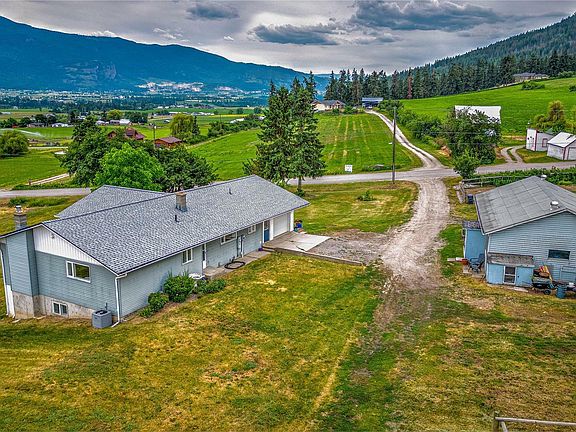 7.38 Acre horse property in Armstrong BC. Walking distance to Farmstrong Cidery. The house is a beautifully updated 4 bedroom 2.5 bathroom Rancher with a walk-out lower floor. The main floor has been almost completely updated. Updates include natural gas service, Central Air, new luxury vinyl flooring and carpet on the main floor, Open concept main floor kitchen, living and dining area. Kitchen has been totally redone. New cabinets, counters, backsplash etc. New light fixtures, doors, trim, paint, living room fireplace the list goes on. There is a large 190 sqft sunroom & a view deck with natural gas BBQ hookup. 2 bedrooms & 1.5 baths upstairs. The downstairs has 2 bedroom and 1 full bathroom with a living room area that would be a great area for a suite with the separate access underneath the deck. Awesome 26x40 insulated and wired shop. 44'x40' Hay shed. Horse paddock, The 80'x100' riding arena footing has been professionally done. 5+ acre grass alfalfa hayfield. On municipal water. Close to riding trails just up the road on Rose Swanson Mountain off Chamberlaine Road.