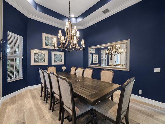 Throughout the home, you'll find solid wood 8' doors, creating an elegant and sophisticated atmosphere. The four walk-in closets provide ample storage space, while the tray ceilings, 600 feet of crown molding throughout the home and 5 1/2-inch baseboards add a touch of architectural finesse. The soft gray custom vinyl floors add a contemporary and comfortable feel to the living spaces, and the rounded corner bead adds a subtle touch of elegance.