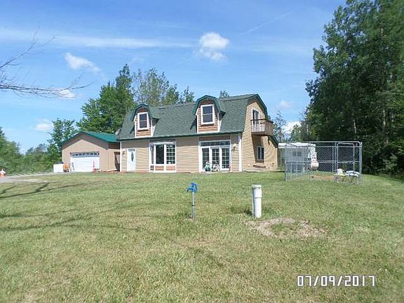 Charming loft used as living space with Bedroom, Dining and Livingroom areas. Main floor BR has double closets and triple french doors. Master Bath has heated jet tub and bluetooth LED lighting. Open 24x24 space, to finish as you like, has views of Pond from Bay window. Forced Air Furnace. Central Air. 200 amp electrical. Main floor laundry. Upstairs balconies, downstairs patio. 10x20 Breezeway. 48x24 Garage. Awesome property with pond. Lots of wildlife. Possible Land Contract: $45,000 down, 7% int, $600 month.