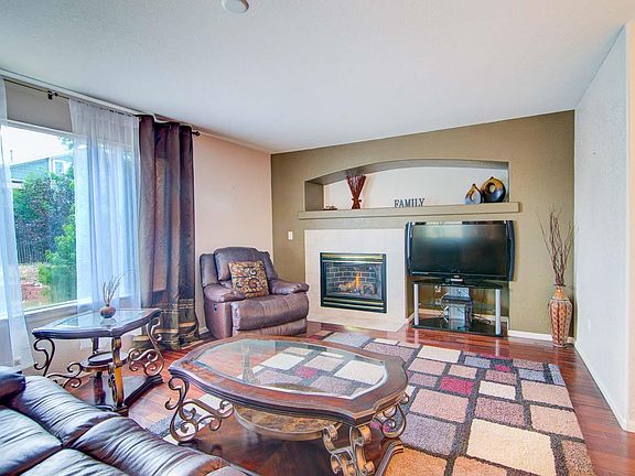 Beautiful two story home located in Willow Trace with open and functional floorplan. The main level boasts a formal living and dining room at the vaulted entry, a family room with gas fireplace, built-in mantel and large window for great natural lighting, and an eat-in kitchen that overlooks the family room and features an abundance of oak cabinets, tons of counter space, a breakfast bar, and tile flooring. The upper level is complete with all new carpet, 3 secondary bedrooms, a full bath, and a vaulted master suite with walk-in closet, ceiling fan, great natural lighting, and a private 5 piece bathroom with updated flooring, double vanity and soaking tub. Fenced and landscaped backyard with patio. Located in highly rated Cherry Creek School District and close to Aspen Crossing Elementary School and Sky Vista Middle School.