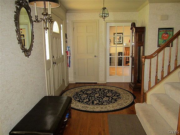 This is the Dream Home you've been looking for: a big, beautiful Colonial with a serene, private backyard on a .62 acre lot & situated on a cul-de-sac! Well-maintained inside & out with some fresh interior paint, new flooring, very cool lighting, and a LONG list of updates & upgrades (see attached) * Kitchen & Dining Area w/a gas fireplace are large enough for any sized gathering and boast newer SS appliances, miles of SS counterspace & Maple cabinetry and a Mud Room w/a double-wide Pantry/Closet and access to the 3-Season Room, large Patio, Grilling Station and fully fenced backyard w/a wooded "forever green" behind * Private 1st Fl Office (or Formal Dining Rm) and a lovely Greatroom featuring dramatic ceiling angles & a fresh neutral decor * Regal Master Bdrm w/DEEP WI closet and Private Bath, two more spacious bedrooms, and updated Main Bath * Finished basement boasts a Playroom (with a Fort!), Media Room, Work-out Room, and plenty of storage * The manicured lawn is highlighted by all kinds of flowering perennials and, in back, a firepit and handy Garden Shed * Newer furnace & Hot Water Tank * Radon Mitigation System * Wired for ADT Security * West Genesee School District!