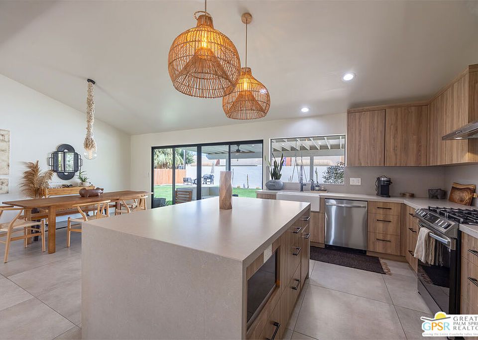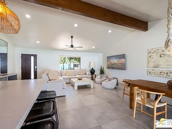 Presenting an exceptional property that has undergone a breathtaking transformation, leaving no corner untouched. This remarkable residence showcases 3 bedrooms and 2 bathrooms, alongside a meticulously restored pebble tech surface pool. Nestled on an expansive 11,000 square foot lot in the heart of Palm Desert, this location offers easy access to the vibrant College of the Desert, El Paseo, shopping destinations, top-notch restaurants, and a myriad of amenities. As you step inside, prepare to be awestruck by the soaring, high vaulted ceiling, gracefully adorned with organic beams that exude a sense of grandeur and elegance. The interior has been thoughtfully designed to maximize natural lighting, thanks to the addition of an expanded sliding glass door, which creates a seamless connection between the indoors and outdoors. Immerse yourself in the ambiance of this home, where every detail has been meticulously crafted to create an inviting and comfortable atmosphere. Whether you're hosting a gathering or simply unwinding, the entertainers dream backyard beckons, offering a perfect oasis for relaxation and enjoyment. From the moment you enter, you'll be enveloped in a feeling of tranquility and luxury, making this property an exceptional opportunity to experience the best of Palm Desert living.
