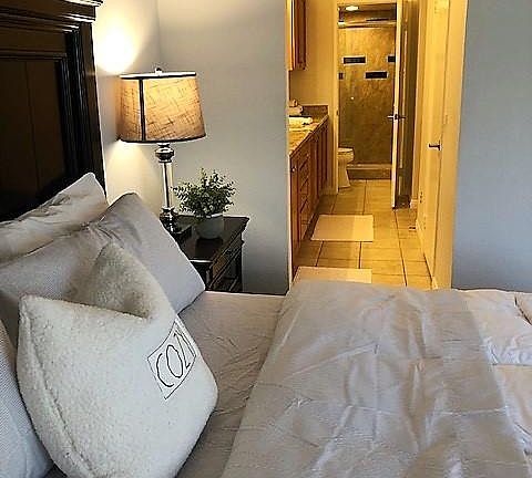 $1,975/month. Includes cable/internet/water/trash! Tenant only pays gas and electric Long-term preferred. Will consider 6+month term. No pets property. Elegantly furnished 1,300sf remodeled condominium with 2 spacious bedrooms, 2 full bathrooms, bright kitchen, fireplace in living room, huge walk-in closet, outdoor patio with green space and shady mature trees, reserved covered parking space and laundry closet. Desert Breezes is a gated community in one of the best central locations! Located, close to shops, parks, restaurants and all the desert lifestyle offers! Pools, spas, tennis courts, renovated clubhouse and fitness room. This is the one. Don't miss! Move in ready! Cable/Internet, water, trash included. Tenant pays electricity & gas.