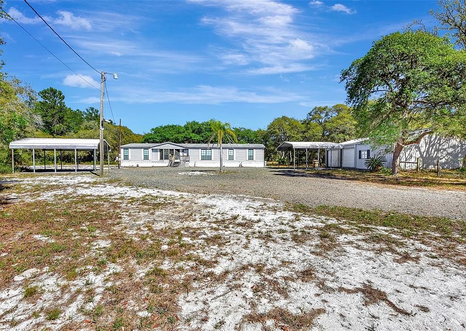 Lets move to the country and eat alot of peaches!! Live on this really awesome 4.85 acres, you can have your mini farm here, it is zoned Agricultural, Or just enjoy the lovely country views, take a walk around the block and feel as if you are in a park. This 1988 manufactured home has 2156 sq ft of living space. Large rooms, Walk in closets, Inside Laundry room. Kitchen has an island and lots of cabinets. Its an open concept layout and it has cathedrial ceilings in the living area. There is a 30X40 Metal garage that has a roll up door and it has Electric. There is also a carport in front of roll up door for keeping your toys out of the sun. The property is mostly fenced and has a gated entry. Funishings included. This property is very private, when you are in the back yard there is nothing in site but trees and land! There is a large concreted area under the oaks for cooking and hanging out. This property is not far from the Ocala National Forest where you can fish & hunt and camp. Its only 15 minutes to Umatilla where you have shopping and dining and Doctors etc. Its about 25 minutes to Deland. Paisley has a great Library, Post Office, a wonderful restuarant, churches, and convenient stores and the Dollar General. Come see this super cool property for yourself and see what you think.