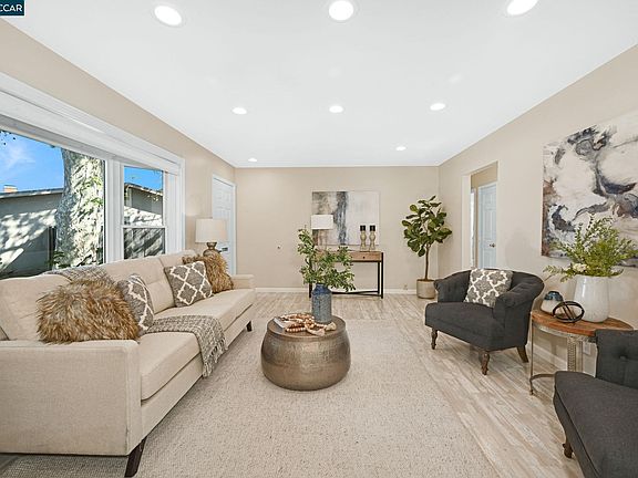 This two unit property offers a charming 3/2 +/-1159sf main house plus a 1/1 +/-450sf ADU, all on a large lot on a cul de sac in Concord. Step inside the front door of the main residence to find an open and updated floorplan with a bay window ensuring plenty of natural light. Walk through the dining area with French doors leading to a covered patio, and into the sunny kitchen with newer cabinets, updated stainless steel appliances, a farm house sink, and a garden window looking out to the expansive, fenced backyard. Down the hall, three bedrooms including a large primary, and two full baths mean room for everyone. Tucked to one side at the front of the house is a separate entrance to an income-producing ADU. Head up the stairs where you'll find an updated kitchen and full bath and living space with large windows and a separate heating/AC unit. Other features of the home include a brand new 2023 roof, HVAC system, and drainage. Also updated electrical, and a quarter-acre flat lot that might offer space for yet another ADU or a swimming pool (check with the City to be sure). All this close to schools, shopping, hiking trails and commute corridors. Come on by and come home to Concord!