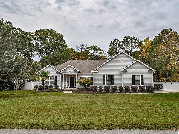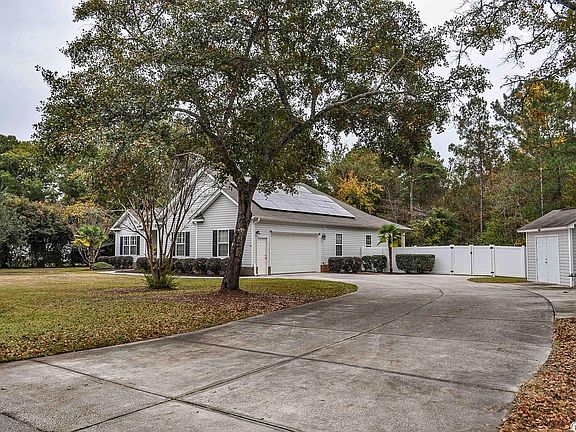 NO HOA, PARK YOUR RV'S AND/OR BOATS, AND MULTI FAMILY CARS! Very rarely do you see an Executive Home with No HOA in a Well Maintained Community.....but this is a Masterfully-maintained Street. The true pride of ownership shows in the private and tucked away dead end street with long time residents and very little turnover. Now, the HOUSE.......this EXECUTIVE RANCH home shows like a new house with high end finishes, plantation shutters throughout, hand scraped wood floors, and tasteful decor. 3 Bedrooms and 2.5 Baths is just the beginning! Beach life provides little use for a Formal Dining Room, so a Home Office could easily be made with French Doors. Other features include a Gas Fire-Place in Family Room with Vaulted Ceilings and Built-ins, 1/2 Bath off the Foyer, Lovely Carolina Room with tongue and groove ceilings overlooks the large rear yard, HUGE Eat In Kitchen with White Cabinetry, Stainless Steel Appliances, Granite Counters and extra Bar-top seating. There is great privacy in this Split Bedroom plan with 2 Bedrooms, 1 Bath in one Wing, and Primary Wing with a Massive 14X29 ft Bedroom (could easily accommodate a desk or seating area,) closets galore, and Spa Like Primary Bath with Jacuzzi tub, shower, linen closet, separate double vanities and private toilet. The Mud room off the Kitchen can accommodate the washer and dryer, OR, it can be maintained in the 588 sq ft extra large garage as shown. Upstairs over the garage with pull down stairs, is 700 sq feet of floored and well insulated storage space, additional garden storage too with an outside building is in the side yard. Fencing has been installed in the manicured and flat rear yard that could accommodate a great in-ground pool should you desire. Solar Panel System is new and conveys with no debt, and has a proven record of lower utility bills. The quiet neighborhood enjoys the serenity of one removed from the heavy traffic with no thru traffic and destination living. This great home is located just minutes from Murrells Inlet's Restaurant Row for great food and entertainment, excellent hospital and medical clinics within easy drive. Boat landings and charters along the Inlet and River, numerous golf courses with public and private clubs, fraternal and civic organizations give great opportunity for new friends and a great recreational mix. Served by Georgetown County public schools in Pawleys Island, student spirit runs high, with academic and athletic excellence. The nearby Huntington Beach State Park provides great beach access, and you are just 1.5 hours from Charleston, SC. Measurements were taken from County Records and Buyers are invited to confirm for themselves. All offers should be accompanied by Pre Approval of Loan from Lender, and/or Proof of Cash to Close. Call today for a showing. A 3 hour notice to show is required. There is a previously scheduled Open House on Sunday, November 19th from 1:00 to 4:00 PM at which time buyers may preview this home with the intent of back up offers on the Pending Transaction.