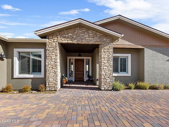 Pictures do not do this house justice. It's a ''must see'' in person. Stunning luxury home with fantastic views, built by Aspen Valley Homes. 3 Bedrooms, 2 1/2 baths plus an office. Luxury vinyl plank flooring, The chef-inspired kitchen features sophisticated antique black cabinetry with crown molding, complemented by a premium Cafe SS appliance package. This includes a 6-burner gas range with convection oven, a Zephyr canopy hood, a Sharp microwave drawer, and a large, convenient pantry. The expansive island is ideal for both entertaining and casual dining, and it flows seamlessly into an adjacent dining area. Kitchen cabinets offer pullout shelves. Take note of teh built in cabinets in the living room as well as the garage upgrades with cabinets and floor coating.