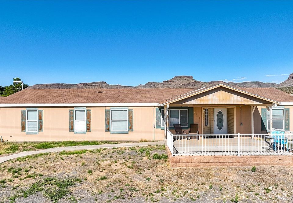Welcome to your oasis nestled within the Lake Mohave Country Club Estates 3. This 2003-built manufactured home needs some improvements and TLC, new carpet, paint, etc., but is well-built and boasts a thoughtfully designed split floor plan, offering privacy, comfort, and convenience. Situated on a sprawling 1.02-acre lot with fencing on three sides, and additional backyard fencing for your pets, this property promises a blend of spaciousness and tranquility. Car enthusiasts and hobbyists alike will delight in the expansive 1,159 sq. ft. garage, providing ample space for storage and creative projects with built-in shelves on the entire length of garage, and two additional built-ins on either end. There is a covered carport as well, and an entire acre of room for RV parking. Bring all the toys! Step inside and enjoy the expansive 2,123 sq. ft. of living space. Plenty of room with 3 spacious bedrooms, and a large den with French doors, providing a versatile space that can adapt to your lifestyle needs, whether it's a home office, library, or additional living area. This home is waiting for your personal touches and improvements. Indulge in relaxation within the vast master suite, complete with a huge master bathroom featuring dual vanities, a walk-in shower, and a separate walk-in soaking jetted tub your personal spa retreat awaits! Step outside and discover the enchanting allure of the great outdoors with panoramic mountain views. The covered front deck invites you to savor your morning coffee or enjoy a leisurely chat with neighbors. Retreat to the covered rear patio, where you can bask in the beauty of the mountain views, with over an acre of land you'll enjoy your privacy. Lake Mohave Country Club Estates 3 is a sought-after community known for its serene ambiance and picturesque landscapes. Embrace the spirit of outdoor living with nearby access to nature trails, golf courses, and recreational activities. Experience comfortable living amidst natural beauty.
