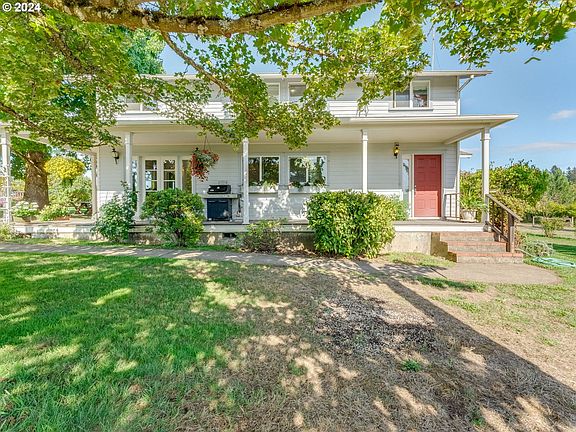 Live the life you have always wanted! Well cared for farmhouse on over 4 acres just minutes from Downtown McMinnville, schools and shopping. Charming and functional wraparound porch, separate entry to mudroom/laundry and full bath. The main level features an open floor plan with abundant natural light throughout. Dining room with french doors to the porch, open kitchen with walk-in pantry and sink overlooking the beautiful surroundings. The main floor features two bedrooms and an additional full hallway bathroom. The primary bedroom boasts vaulted ceilings, a large skylight with custom wood cover, and large windows. The second bedroom has beautiful hardwood floors and lots of natural light. Upstairs you will find a multipurpose loft area, two additional bedrooms and a walk-in attic storage area. The property includes a working barn and fenced pastures, chicken tractor, shop with sink, wood stove and an unfinished attic area above. Two car, extra deep detached garage, extensive flower, fruit and vegetable gardens; an orchard with pear and apple trees! High volume well. Make this unique and wonderful property your own!
