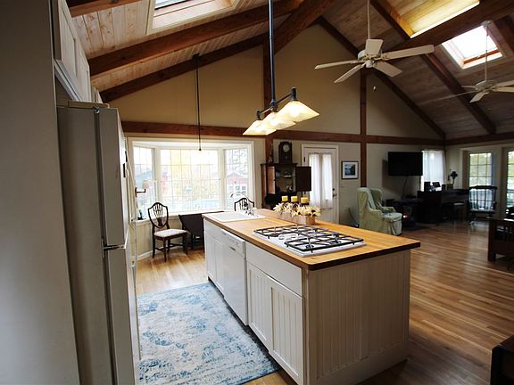 Welcome to this spectacular Douglas fir Post & Beam year round lake home built in 2001 with 100' of lake frontage, detached 2 car garage with open concept on all levels. First floor offers hardwood floors, cathedral ceilings, master suite, 2nd bedroom and sewing room or office, laundry room with storage. Walk out from the living room or master bedroom to your private screened in Porch, take in all those amazing lake views, sunsets, summer time fun and ice fishing tournaments or just relax. Separate deck for relaxing off the fully equipped kitchen with his & hers terraced gardens for flowers, vegetables, fruit trees, partially fenced in yard for your furbabies and kiddo's and much more. 2nd level offers 2 bedrooms and full bath with family room and porch with access to the outside gardens. Maintained to the T and systems are all ready for all your family gatherings in all Vermont 4 seasons.