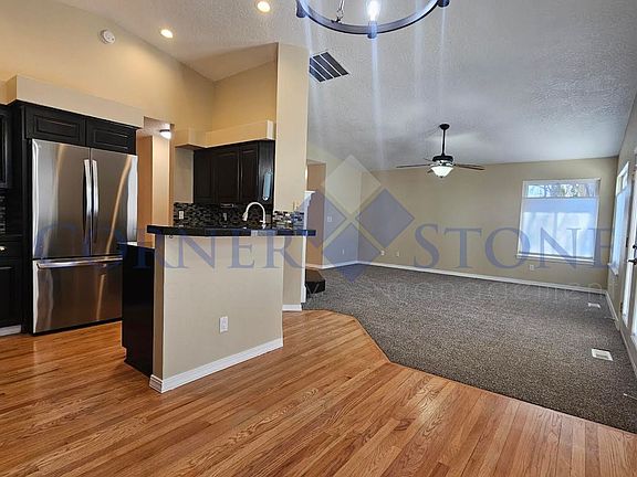 Step into this beautifully refreshed 3 bedroom 2 bathroom home where the main living area shines with vaulted ceilings and abundant natural light. The kitchen is equipped with all major appliances, breakfast bar, and a microwave that doubles as an air fryertalk about a bonus! Hardwood flows throughout, with plush carpet reserved just for the cozy living room. The master suite is a showstopper, featuring vaulted ceilings and a stunning on-suite with dual vanities and a spacious tiled walk-in shower. Plus, the master closet comes with custom built-ins for storage. The other two bedrooms are nicely sized and equally inviting. Washer, dryer, and a water softener are includedtenants just need to keep the salt topped off. Outside, unwind on the covered extended patio or stash your extras in the handy shed. The home also offers RV parking! This is a must-see home you won't want to missdon't let it slip away! **First months rent due at time of key pick-up.** **Available date subject to change. ** -Due to recent scams we are requiring anyone who wants to view the property to bring a valid driver's license or ID to our office before we give access to the property. -We kindly ask that you respect the current tenants, and not go to the home without prior approval. **PROFESSIONALLY MANAGED BY CORNERSTONE PROPERTY MANAGEMENT**