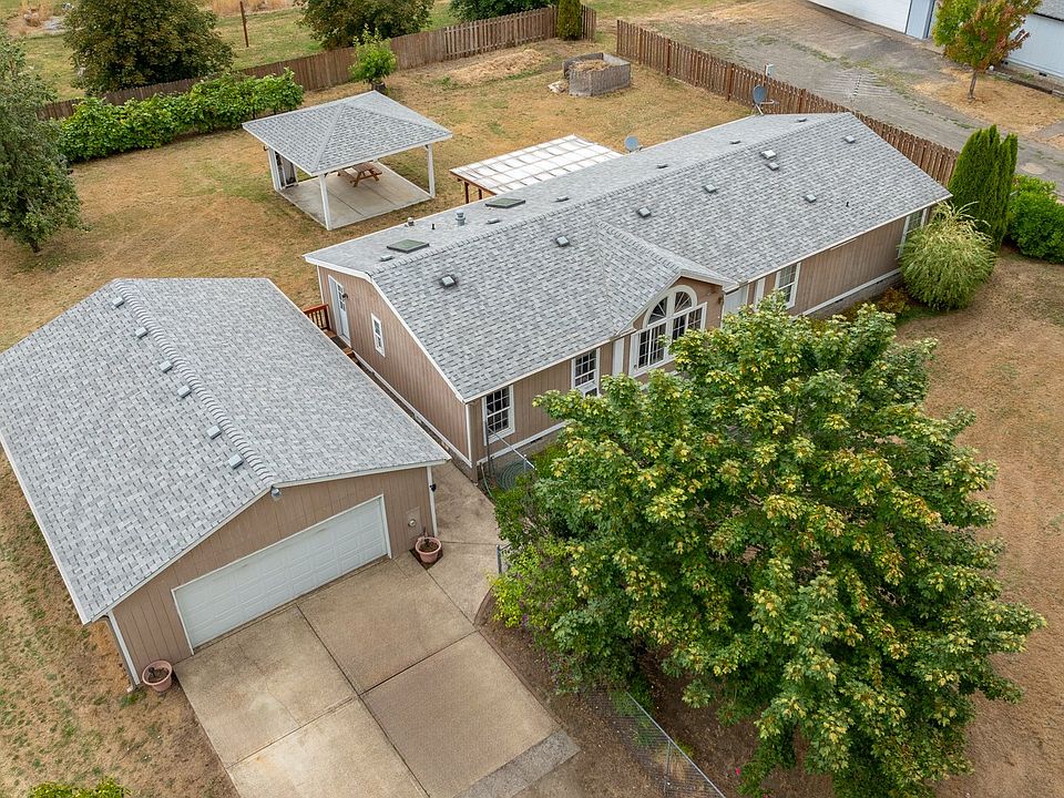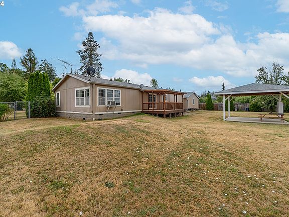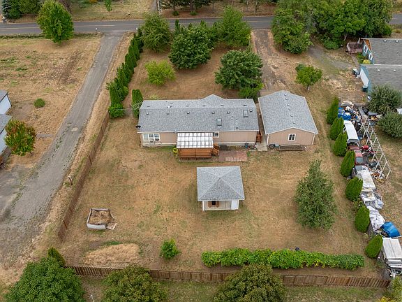 Discover affordable acreage on a peaceful 0.65-acre lot perfectly positioned between Amity and McMinnville. This 1995 manufactured home features 1,620 sq ft of living space, offering 3 bedrooms, 2 baths, and two spacious living rooms. The kitchen and large utility room provide ample storage and functionality. Outside, enjoy a fully fenced, level yard with a gazebo, grapevines, and fruit trees, including pear, plum, and walnut. The property also includes a detached 2-car garage, a long driveway, ramp access to the front door, newer vinyl windows, leaf filter gutters, a new furnace (2021). Convenient access to McMinnville, Salem, and the Oregon Coast makes this an ideal rural property!