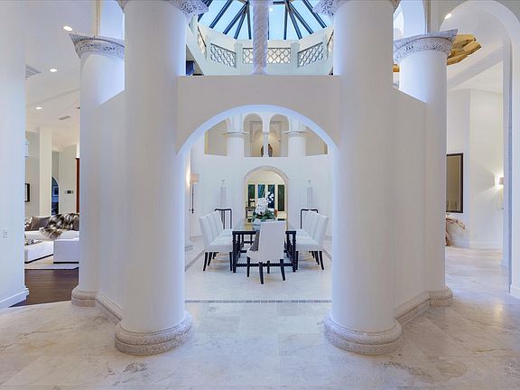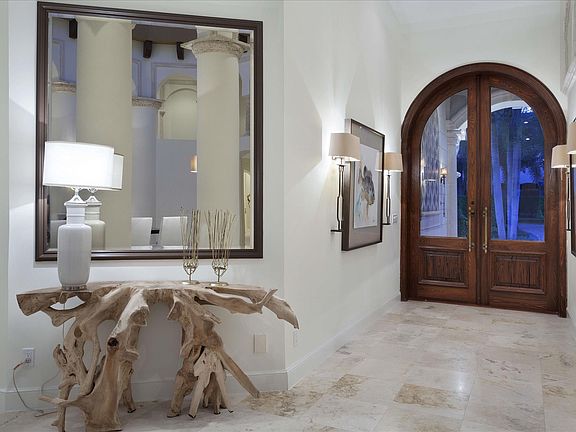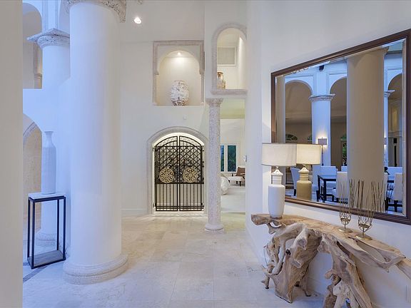 Set behind the guarded gates of The Sanctuary, this Montecito-inspired estate has been artfully remastered provides the luxury of resort-style living in a setting of private landscaped gardens. Themed with a chic, relaxed sense of style, architectural elements are used to create a distinctive and inviting impression within the voluminous open layout.Central to the scheme is the dramatic atrium dining room, framed in columns under an enormous skylight that bathes the space in sunlight. Radiating from this room, the versatile great room and club room open their doors to the pool patio, an exquisite outdoor entertainment space centered on a pergola-covered lounge area by a Haddonstone garden fountain all magnificently lit by evening. There are also two separate offices and four bedroom suites, featuring luxurious master quarters designed as a serene retreat opening out by the pool and gardens. Deepwater dockage is additionally available at The Sanctuarys marina in this prestigious Boca Raton enclave.LocationSanctuary Lane, Boca Raton, Florida. One of the nations most prestigious communities, The Sanctuary is a guard-gated yachting enclave featuring a 20-slip marina, Har-Tru tennis courts, and 27-acre bird/wildlife preserve all in the utmost seclusion with private road and water patrols. Close to the beach, this exclusive address is only minutes from the legendary Boca Raton Resort & Club, Mizner Parks world-class shopping and dining, and Boca Ratons private executive airport.PropertyThis newly remastered Montecito-inspired estate resides on immaculately landscaped lawns. Lavish gardens seclude the resort-style outdoor entertainment space encompassing a dining area with summer kitchen and a pergola with garden fountain by the elegant custom pool with spa.ResidenceHigh-style design elements add casual elegance in an effortless single-level floor-plan totaling 7,011 square feet with Saturnia marble and hardwood walnut hand scraped floors, open living areas, four bedrooms, five and a-half baths, and a three-bay garage. Myriad new features include the impact-glass windows and exterior doors, generator, high-efficiency Rheem air conditioning, tankless water heater, sophisticated security system, with carbon dioxide sensors and comprehensive intercom/sound system.Inside the arched double doors, the soaring gallery foyer draws the eye through the atrium-style dining room to the great room and garden patio beyond. A breathtaking focal point, defined by stately columns, the dining room is crowned by a light-flooded vaulted skylight above Moroccan-inspired, corbeled embellishments. Off this grand space are the powder room and wine room, fitted with ornamental ironwork gates topped by a lighted art niche. A versatile living/entertaining space, the airy vaulted great room opens its doors to the pool patio and provides multiple seating areas, media/storage/display built-ins with a 65-inch plasma television, and a sit-down bar. Through an archway, the club room also leads to the patio and has an adjoining full bath. Open to the great room and dining room, the remodeled chefs kitchen offers richly crafted cabinetry, granite counters, a professional-style Viking gas range/grill, Sub-Zero refrigerator, U-Line wine cooler, and Thermador double ovens, microwave, and warming drawer. Off the foyer is a custom-appointed office/library plus another office or bedroom, sharing the club rooms bath. In the southwest wing, the serenely elegant master suite opens out to the pool and gardens from an inviting sitting area. This generously sized suite also features two customized walk-in closets and an exquisite marble bath with 24-karat gold-plated Phylrich fixtures, a jetted tub under a leaded-glass window, and a separate Toto water closet. Three more bedrooms all have walk-in closets and en-suite baths.