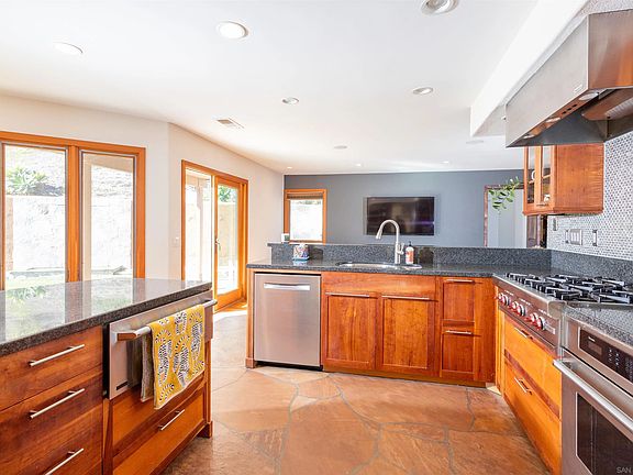 This is the house you have been waiting for! Large, almost .5 Acre lot. No HOA Fees! Fully remodeled and upgraded with 8 kw Solar panel system, installed 2019 - EV-Tou5 SDGE grid generating credits - up to $.51684 per Kwh. RV-Trailer parking, and/or Boat Parking. Private digital keypad side entry for RV-Trailer into Laundry and Full Bath. Four Bedrooms, plus downstairs office/study. New Master Patio, outdoor Pergola, custom wrought iron stair railing and patio railing. Sub-zero fridge/freezer, Wolf gas burner stove/oven, Wolf warmer, remodeled bathrooms, claw-foot tub in the master. Addition in 2024 including full bathroom, laundry room, and office. Plenty of room for large ADU. HOPE ELEMENTARY School, don't miss this special home. GORGEOUS is the word that best describes this home! It has custom features throughout: Fabulous kitchen with custom cherry cabinets, Impala black granite, Sub-Zero 48" side by side refrigerator, Wolf range top, Thermador oven, warming drawer, Thermador microwave, Bosch dishwasher, custom island, Kindred sink and Grohe faucet. Attractive Loewen casement windows and sliding doors (Douglas fir on inside, aluminum clad on outside) Custom interior doors to rooms and closet doors (Douglas fir), custom entertainment center in family room made of birch. Fireplace has custom flagstone hearth. All bathrooms have maple cabinets, Kohler toilets and sinks, custom maple framed mirrors, Bianco Romano granite on counters, and all bathroom faucets/shower heads are the Grohe brand. Kohler toilets and sinks. Master bath flooring is Botticino tumbled marble, and shower is Bianco Romano granite, and door is frameless glass. Hallbath also has marble flooring and shower titled with Bottinino tumbled marble. Notice the custom-made cabinets in upstairs hallway, bookshelves in secondary bedroom, and custom organizers in master closet. Custom Maple cabinets in the garage too! 13 fruit trees, cherry, apple, guava, peach& pomegranate.