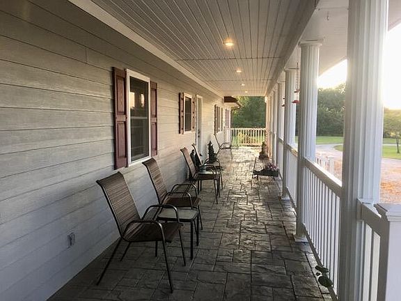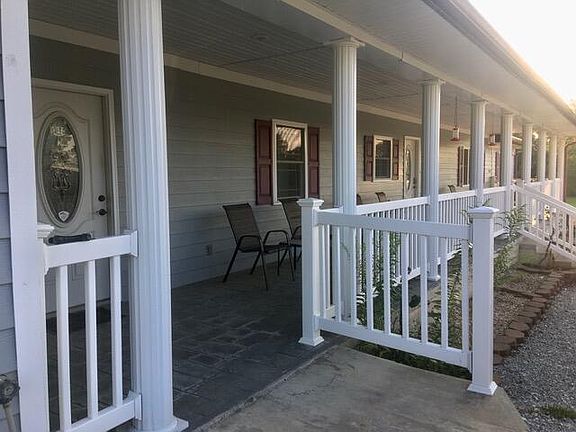 Situated in the center of the Missouri Ozarks. This home features Concrete Exterior Walls, sprinkler system in the yard, water softener, extra workshop with overhead door attached to the 2-car garage, gorgeous front porch. 4 Bedroom 2 Bath, Large Living Room with Vaulted ceilings. The kitchen is beautiful with custom hickory cabinets, large mud room. Close to Rivers and State Land. No Restrictions.