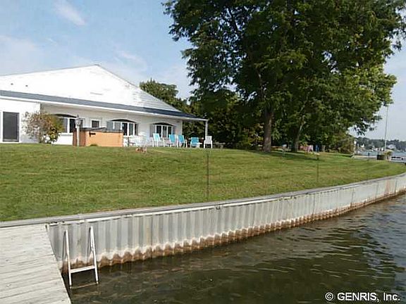 Unique & interesting parcel on west shore of Seneca LK, on the "Seneca Wine Trail". Property feature 180' of level lake front w/ seawall, panoramic views, dock, 1 acre lot, 6700+ sq. ft. building divided into approx. 4000 sq. ft. 3 bedroom, 3 bath updated home w/ open flr. plan , lakeside walkout master suite, plus approx. 2700 sq. ft., office or could be converted to additional apartment. Property is zoned R2 and is serviced by municipal water & sewer.