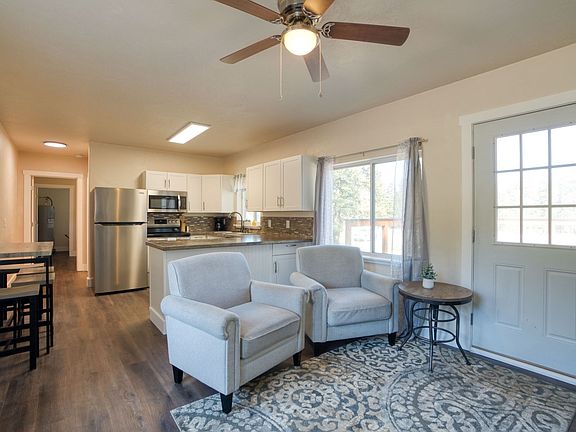 Charming furnished cottage, conveniently located near US Highway 2 West, approximately 10 minutes from Kalispell. Recently constructed open floor plan with 2 bedrooms, 1 bathroom, 1,131 SF. Plenty of sleep space for everyone with queen beds in both bedrooms. Fully equipped kitchen to chef up your creations and a nice sized peninsula to entertain your friends and family. Relax at the end of the day by the cozy fireplace. Enjoy the peaceful and tranquil lifestyle on the large back yard deck as you are nestled in the edge of the woods. Utilities negotiable, not included in advertised rent. Pets negotiable, subject to pet policy.
