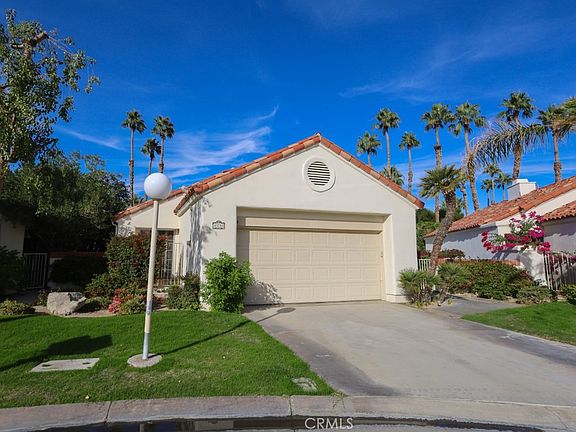 Welcome to 43750 Via Palma! A luxurious 2 bedroom 2.5 bathroom home nestled in a private gated community of Palm Desert! This single story gem boasts 1,650 sqft of living space & is situated on a spacious 6,098 sqft lot at the end of a culdesac, offering tranquility & privacy! Step into your own paradise, where a sparking salt water pool awaits, complete with remote control access via your phone. The newly installed vinyl plank flooring in the secondary master bedroom adds a touch of modern elegance, while the master bathroom & half bath exude luxury & comfort! The heart of the home is the kitchen, featuring new stainless steel appliances, sleek granite countertops & a cozy refaced fireplace with a granite countertop bar perfect for entertaining. Outside, the new hydro turf & cement around the pool create a stylish outdoor retreat! Enjoy scenic Mountain View’s and the convenience of being just minutes away from the golf course & tennis club! Upscale dining & shopping nearby! HOA features include tennis courts, community pools, club house with gym that include his & her showers! Don’t miss this opportunity to purchase the ultimate dream home!