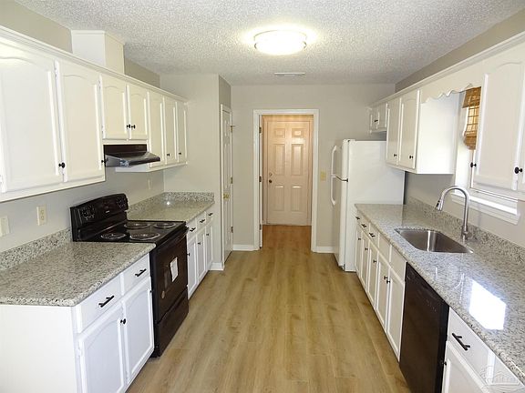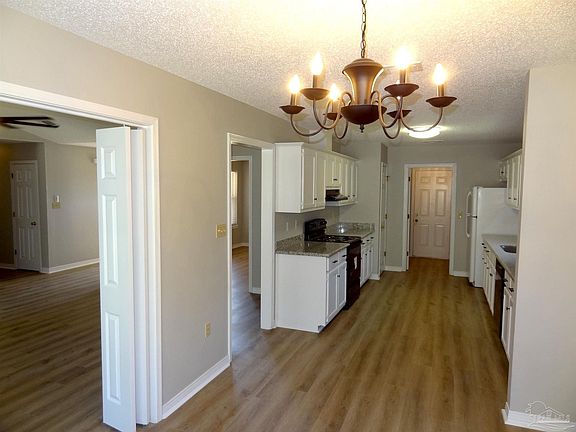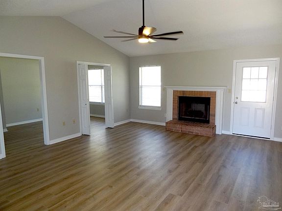 This brick veneer home is ready and awaiting you as its new owner(s). Located in Pace, this home is situated off Woodbine Road in the established Bayou Ridge Subdivision. An ideal location close to stores, schools, colleges & interstate access. As you enter the home from the front porch you will find a contemporary open airy floor plan in this inviting, functional, 3 bedrooms & 2 full baths floor plan. The spacious great room with a cathedral ceiling, LVP floors, and modern ceiling fan with brick fireplace is the main focal point. The interior of the home has been freshly painted with a soothing pallet. There is new Luxury Vinyl Plank (LVP) flooring throughout the main living areas with new carpet in all of the bedrooms. The kitchen has freshly painted white cabinets, a new stove, and contemporary granite counter tops. A new hot water heater to be installed. Both kitchen and great room overlook the open back patio with its fenced back yard. There is a bonus room which can serve many uses such as a den, office, family room, game room, theater or formal dining room for family dinners and entertaining. The master bedroom with a trey ceiling has plenty of space with an ensuite master bath has double sinks, new granite vanity top and a walk-in closet. Parking is not a problem with a 2 car garage. Check out this property, well worth waiting for! The information as to size and year built were taken from the Property Appraiser Site. The buyer(s) is to satisfy them self/themselves as to the exact size, all property amenities/information or any other items they deem important. This home is currently priced well for todays market conditions.