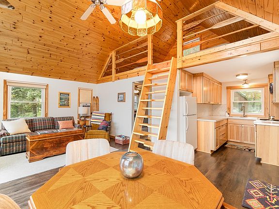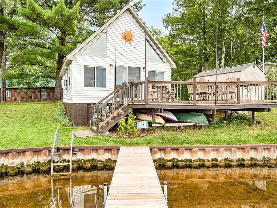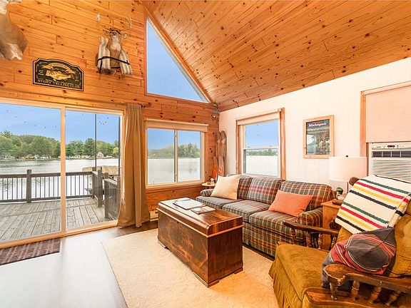 Wiggins Lake Property! You will fall in love with this charming cottage the moment you walk in. The entire cottage has been renovated and is turn key ready. The crisp white walls with knotty pine accents draw your eye up to the vaulted ceiling, and the triangle accent windows give way to a grand view of the sky. One bedroom and bath on the main floor. Glass doors in the living/dining area open up to a deck made for entertaining. An open loft nicely accommodates overnight guest and a sofa sleeper in the living room proves to serve a few more! Wiggins lake is a 345 acre all sports lake that is clean and well maintained. Fishing, boating, kayaking, paddle boarding, you can do it all! Don't forget ice fishing in the winter and just minutes from state land makes it perfect for the hunting party. This one is a must see.