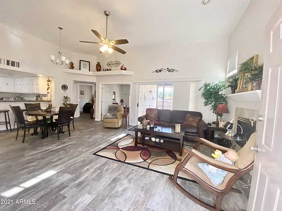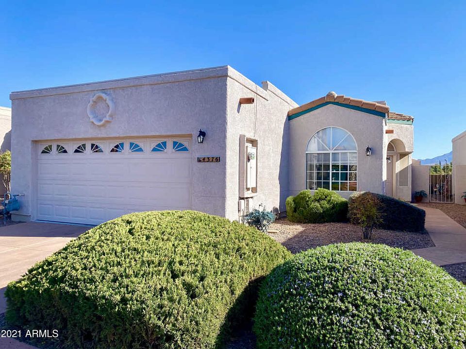 This Beautiful 2 Bedroom, Den, 2 Bath Home in the Desired Desert Springs Community Welcomes You! Resort style living in the heart of Sierra Vista with this lovely Home and showcasing some of the best mountain views.This Home boasts a very sunny, bright and stylish feel with the vaulted ceilings, open floor plan, gorgeous dark gray wood tile & the many beautiful windows. The charm of this home is to be had, with the cozy fireplace, French doors leading into the beautiful Den, & the lovely kitchen with a bonus room of to the side ideal for a butlers style pantry or your perfect coffee bar!The large master bedroom, offers a good sized walk-in closet, and lovely master bath. The large guest bedroom is another taking advantage of the beautiful views this Home has to offer.