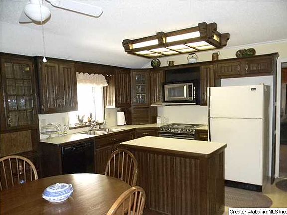 Great value on this 2 Bedroom 2 Bath home in Pinson. The home is in good condition and move in ready. All rooms are oversized including a large eat in Kitchen, large Family Room, and Sunroom off the Kitchen. The lot is nicely landscaped with a sprinkler system, gazebo, and sitting areas. There is a large covered deck off the back Sunroom. Plenty of storage with an exterior storage shed, workshop, and barn/shed for lawn equipment and parking. The HVAC has been updated and home has a newer roof.