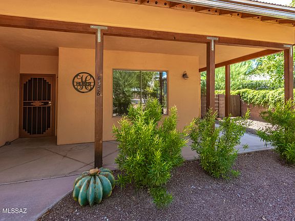 Nestled in a desirable location a mere 4 miles from the prestigious University of Arizona, this fabulous 3 bedroom/2 bathroom residence is a true gem within a gated enclave of 17 homes. The striking architecture boasts dramatic metal roof lines, setting the tone for the remarkable features within. Enjoy the seamless indoor-outdoor transition with front and rear wrap-around porches, while inside, revel in the sophistication of concrete flooring, custom built-in desk and coffee bar. The upgraded kitchen and primary bathroom speak to a modern lifestyle, and the thoughtfully landscaped rear yard forms a serene retreat while the adjacency to the Rillito River Park trail presents endless opportunities for biking and leisurely strolls. Positioned on a tranquil cul-de-sac, and within walking distance to Trader Joe's, this home harmonizes unique design, prime location, and everyday convenience.