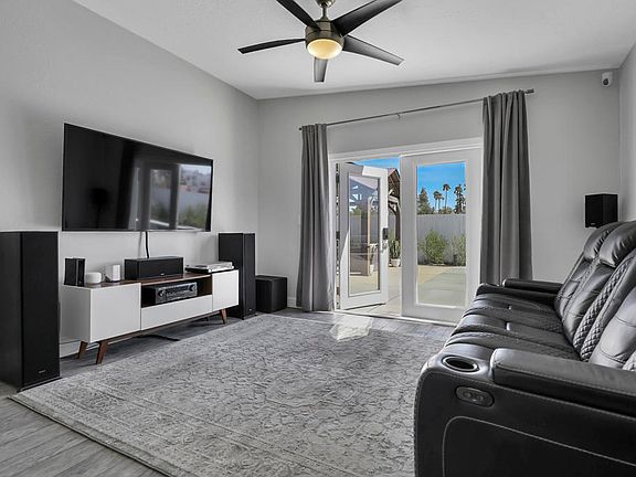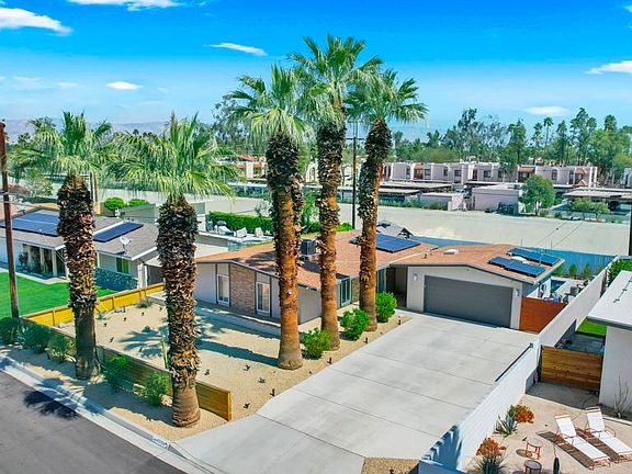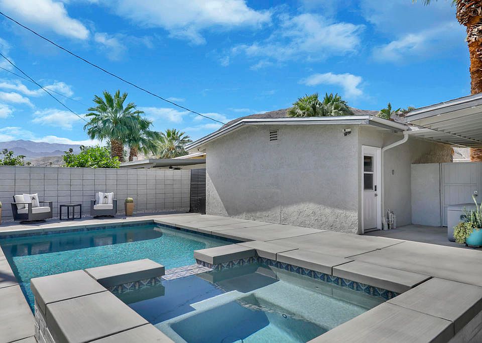 Exceptional opportunity to own this exquisitely renovated home in the heart of Palm Desert. Enjoy a brand-new 30' saltwater pool with raised spa, completed in November 2024. The pool features an upgraded piping system for superior water circulation and efficiency, enhanced by vibrant, color-changing LED lighting. The low-maintenance backyard boasts a charming gazebo, an advanced irrigation system with a Rachio 3 controller, new concrete patio, pavers, and improved drainage along the back and sides. Additional upgrades include a newer A/C unit (October 2024), an OWNED SOLAR system, and a cutting-edge Eufy security system with cameras, video doorbell, and smart locks at every entry. Inside, tile flooring runs throughout, with modernized bathrooms featuring tile showers and tub, dual-paned windows, and a kitchen with updated cabinets and stainless steel appliances. A two-car garage, equipped with a commercial-grade outlet for EV charging, and a 45-foot driveway provide ample space for guests, RV, or boat parking. Set on a quiet cul-de-sac with NO HOA, this home is conveniently located near shopping, dining, El Paseo, McCallum Theater, College of the Desert, and Civic Center Park. Ideal as a primary, secondary, or investment property--move-in ready and a fantastic value.