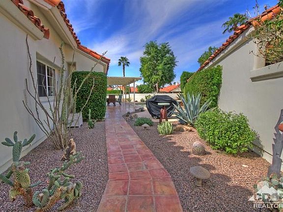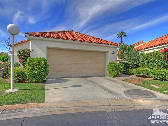 Welcome to this immaculate & move-in ready home in Desert Breezes - perfect for entertaining. Open living, dining & kitchen areas. There are 2 private master suites. Adjoining one of them is an office which has been added(permitted). Kitchen with breakfast bar area has beautiful cabinetry, newer stainless steel appliances (energy efficient), sink & faucet. Extensive use of neutral paint & tile in living areas & in bathrooms. Recessed lighting throughout. Dual pane windows. Newer ceiling fans. Water filter system. For your outdoor pleasure, there is a covered patio area & an inviting pebbletec pool & spa ... cool decking. Drought friendly landscaping. This home is on a quiet culdesac backing up to an expansive green belt area. The monthly HOA of $343 includes security gates, clubhouse with gym & large pool, tennis courts, multiple pools/spas, walking trails & social events. Walking distance to the IW Tennis Gardens. Be sure to show this home to your most discerning clients