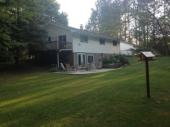 A rare find; a very private home on 40 gorgeous acres in the woods, mixed with fields. It has five bedrooms, a formal living room with stone fireplace, large family room, spacious and updated kitchen, lovely dining area and a 2.5 car detached garage. The land has rolling hills, soft and hard woods with a creek that runs through the middle of it. There are oak, maple, ash, birch, cedar, blue spruce, white pine and a variety of other trees. It includes a 40x60 pole barn with a lean-to that is setup for livestock. Also boasts a 20x40 pole barn and large 12x24 workshop. The house has two levels that includes a finished walk-out basement right onto the patio looking at the gorgeous property. House has up to five bedrooms, 2.5 bathrooms, family room, formal living room with stone fireplace, laundry room with storage and a 2.5 car detached garage (with door openers). The main kitchen has been updated with all custom-made oak cabinets, new fridge, microwave, stove and dishwasher. The entire upper level has lovely hardwood floors. There is a kitchenette/wet bar in the finished basement. There is a beautiful patio outside of the walkout basement french doors, a deck off of the master bedroom and a covered porch off of the living room. High speed Wi-fi access and dish network if desired. Property has a swing set and two story fort for the kids (and bow practice). The pole barn has sections for farm animals or storage as desired. The property has grapes, raspberries, apple trees and a pear tree for your use. There is a huge dog kennel. There are seven deer blinds with two tree stands and lots of wildlife. There are lots of trails for dirt bikes, quads and just a nice nature walk. Taxes for 2020 are less than $2400/year. Please select contact agent (which is us) or directly email GLMIILLER@gmail.com or text 989-313-2828 for your personal virtual tour via Zoom or just to ask questions!