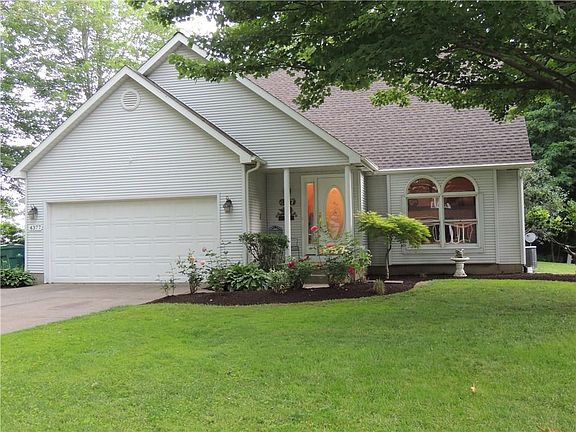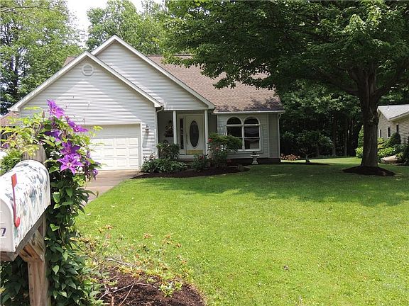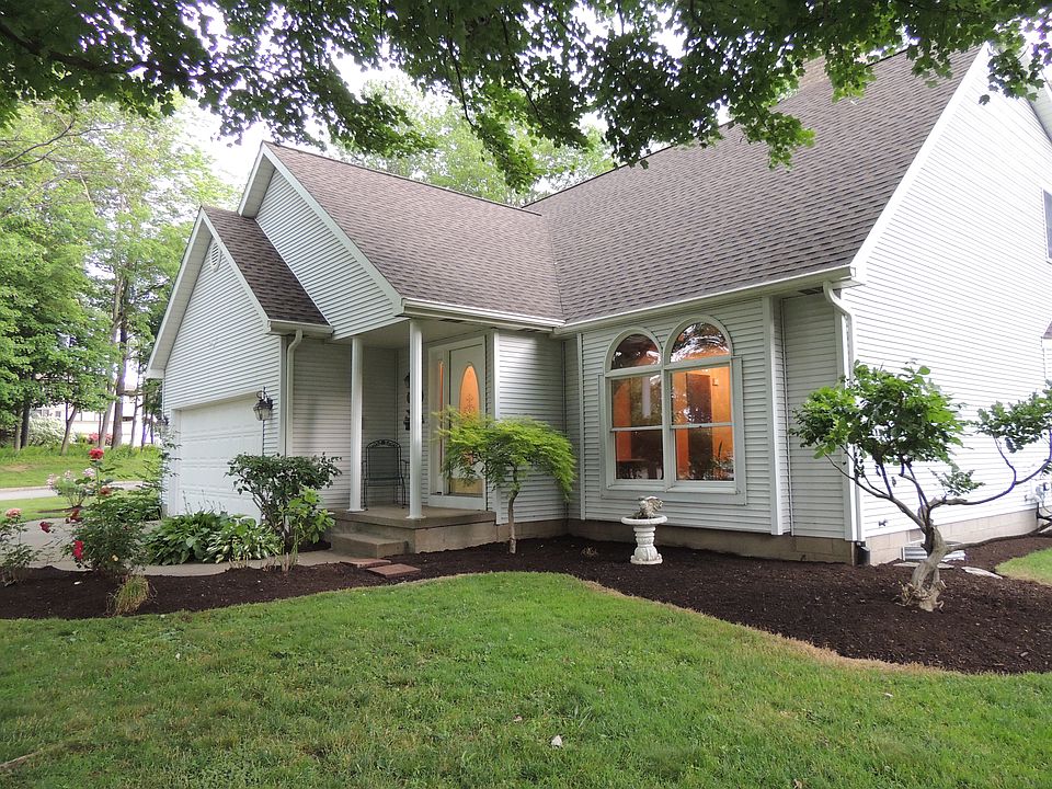 Across from the lake on a beautifully landscaped lot bordering a stream and woods. Gated courtyard with entry into family room. Custom contemporary home with vaulted ceilings & laminate flooring. Bay window in dining area is open to kitchen and family room. Perfect layout for entertaining. Kitchen has plenty of cabinet and counter space with breakfast bar seating. Updated furnace, roof, & hot water tank in 2011/12. Nursery in attic space off 2nd fl bed. 1st fl Master suite and heated sunrm