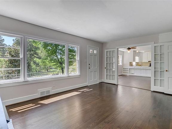 BEST AND FINAL BY 6 PM SUNDAY 4/25. This all brick ranch on just over a half-acre is the perfect opportunity to live central to Winston-Salem, Greensboro, and Kernersville! The bright living room with wood floors, a large picture window, and brick fireplace opens through French doors into the dining room. The eat-in kitchen with white cabinets is the perfect spot for hosting friends and family around the breakfast bar. In addition to the 3 bedrooms and generous hallway full bath, the laundry hosts a half bath for guests. Just off the kitchen, a cozy sun porch leads to the private patio overlooking a naturally shaded backyard with plenty of room to roam. An attached 2-car garage and basement provide tons of storage!