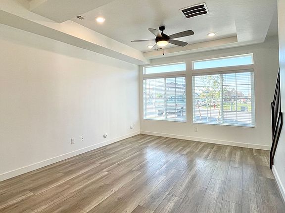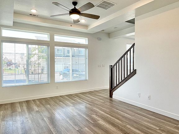Features include an inviting front porch, modern color scheme throughout, plenty of natural light, open living area, upgraded kitchen with quartz countertops and stainless steel appliances, master suite and bath, 450 sq ft loft space, fenced back yard, 2 car garage, mountain views and more!