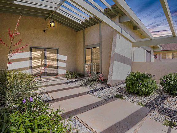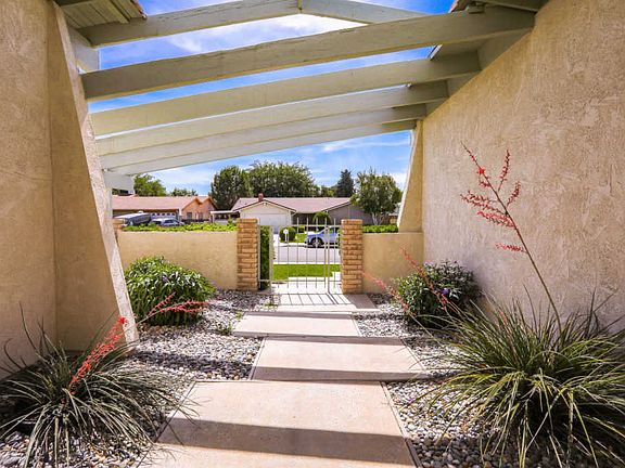 Beautiful single story home features 4 bedrooms & 2 full bathrooms. Upon entry, you are greeted by a large living room with an amazing fireplace & a wall of windows looking out to your lush & private backyard. The kitchen is connected to an inviting family room that includes a gas fireplace & built in wall unit. The granite tiled kitchen includes pull out shelving, an island, & a new faucet. All appliances are updated and included in sale such as fridge, gas oven, microwave, new Bosch dishwasher, trash compactor, washer, & dryer! As you head down the hall you find 4 spacious bedrooms, all with closet shelving & ceiling fans. The master bedroom has a large sliding glass door with custom shade going out to your incredible backyard, along with an updated bathroom & walk-in closet. Extras include newer AC/Heater, newer water heater, plantation shutters, security screen doors, front gated atrium/courtyard, newer roof, & popcorn scraped ceilings. Iris' in back are award winning! Must See!