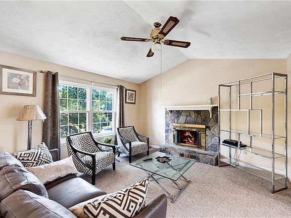 Charming home in fantastic neighborhood nestled on a large level corner lot! Vaulted ceilings in the family room w/ cozy stone fireplace! Large windows let in tons of natural light! Open concept kitchen w/ view to family room. Dining area can seat all your guests! kitchen has pantry & cabinet space for all storage needs! Master suite has full private bath! French door in kitchen opens to back deck perfect for entertaining! Deck has incredible view of large grassy fenced backyard w/ tons of space! Finished basement could be office/playroom/rec room! Large 2 car garage!