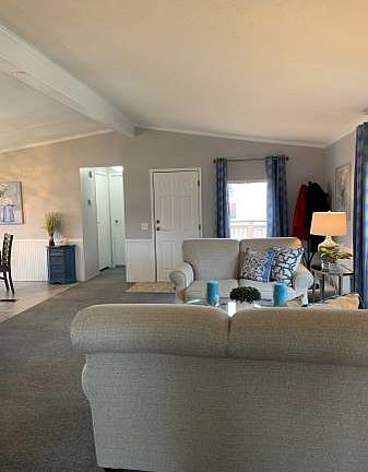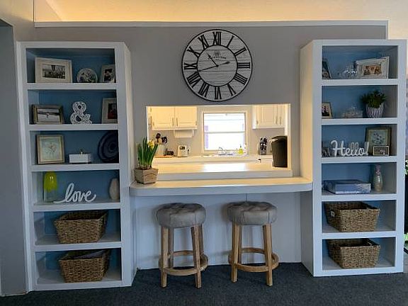 Adorable mobile home, located in Brookside Village. As you walk up to the door, you are greeted with a 15.5 x 15 ft front porch perfect for casual entertaining. As you enter the home, you walk into the large livingroom lit with natural lighting. There is a built in shelving unit to display pictures and other momentos off to one side. To the right you will see the dining room . Next to the dining room is the kitchen which has counters on both sides and great ceiling lighting. Extra display area is above the cabinets. There is a snack bar also with pass thru window. One bedroom is at the front of the house with the master bedroom in the back. The master bedroom has two closets, a full bath, two sinks, and a linen closet. The first bedroom also has a full bath. French doors lead into a third room which can be used as a bedroom, office, playroom, or sun room. Laundry room with washer and dryer are included as well as all other kitchen appliances. Extras include: coat or game closet, outside 24.5 x 13 foot deck surrounded by bushes for privacy, and a storage shed. Kitchen appliances brand new! Vaulted ceilings. Call Karen 616-340-1828 This is a must see!