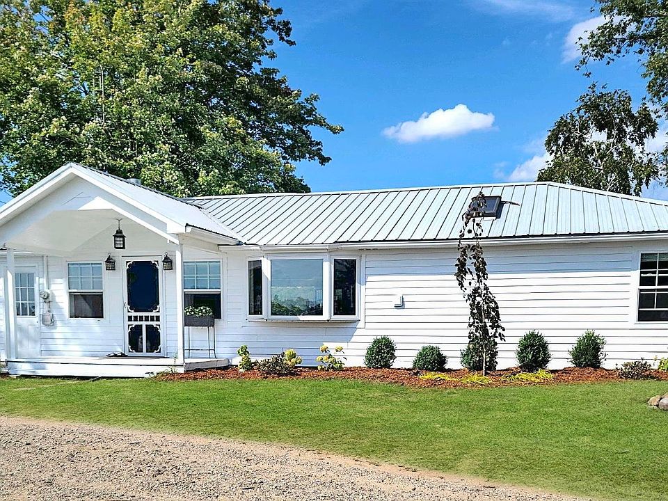 Open house Sunday, April 30 from 2 to 3:30 p.m. Tour this turn key lake front home in person! Parking available for three cars in front of the home, on the opposite side of Buick Trail. Beautifully appointed Wiggins Lake cottage located on the peninsula with water frontage on both sides. Gorgeous lake views from every room. Fully furnished, docks and appliances included. Vaulted ceilings and open living space with walnut floors, floor to ceiling, stone fireplace, three bedrooms, and bonus great room. All completely renovated throughout in 2008. Metal roof, Hardie board siding, fresh exterior paint and landscaping in 2022. Shed, deck and patio to enjoy spectacular sunsets right outside your back door. All sports lake perfect for year round enjoyment with boating, fireworks, golf cart and boat parades at 4th of July, ice fishing, snowmobiling, and close to Snow Snake for tubing and skiing in the winter. Move in ready!
