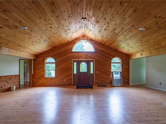 Now arriving on the market is a beautiful 2,005 SqFt Ranch-styled home, an amenity filled property residing privately on 2.2 acres of prosperous land in Herkimer! The property’s appeal is immediately evident upon arrival, with an array of trimmed trees & landscaping to greet you along the driveway that leads to the 2-stall garage in the rear of the home. Entrance into the home welcomes you in with a radiation of natural & recessed lighting that gleams off of the meticulously crafted woodwork. The home’s design & flexibility with multiple common areas gives homeowners the ability to designate rooms at their desire. The home holds 4 large bedrooms throughout the 2,005 SqFt interior, including a main bedroom providing personal amenity with a full bathroom & an attached walk-in closet! The home offers an additional 2 full bathrooms to provide convenience to the household. A large common area currently used as formal dining space provides the means to double as recreation, residing adjacent to the renovated kitchen. The basement area is a large space with garage access, providing the perfect arrangements for workshop activities or utilizing additional storage space.