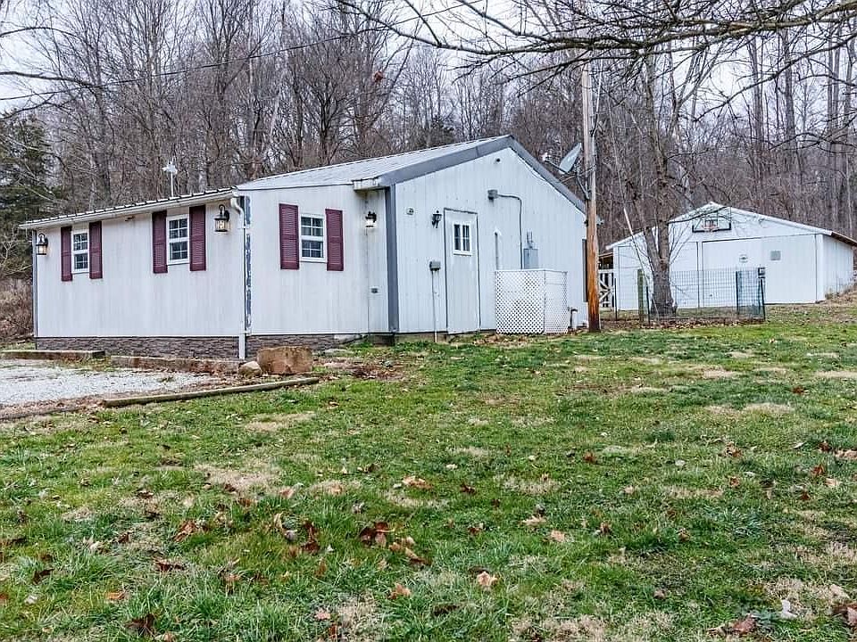 A get a way bungalow located in the country on 1.55 acres 1 or 2 bedroom, kitchen, living room and 2 utility rooms. Horse barn on property and a small garage/ barn. Metal outside finishes. Need a place in the country? Come look at this!