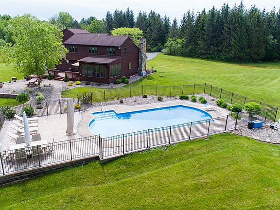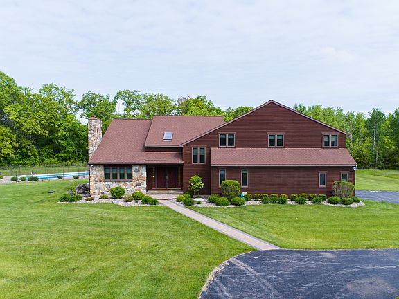 This custom, contemporary home has it all. High end kitchen with commercial grade appliances and huge granite countertop island. The 4 season sunroom looks out onto the pool, patio, deck and 29 acres of land. An extra 1,300 sq.ft in the basement complete with bar is sure to impress. Large master bedroom with spa like bathroom, wood floors, 1st floor office/bedroom and full bath are just a few of the great amenities. A second, 2 car garage/barn has room for all your toys! Call for you private showing today!