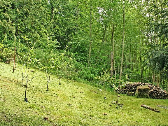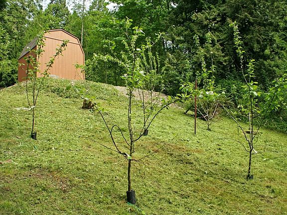 - Lot topography/vegetation: Partial Slope, Fruit Trees, Garden Space, Wooded